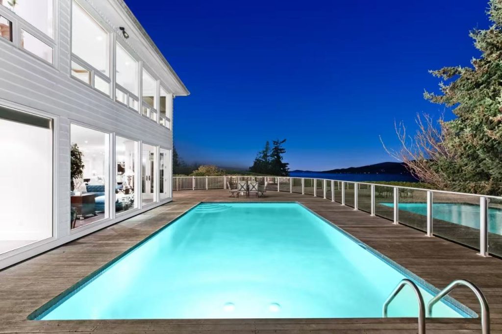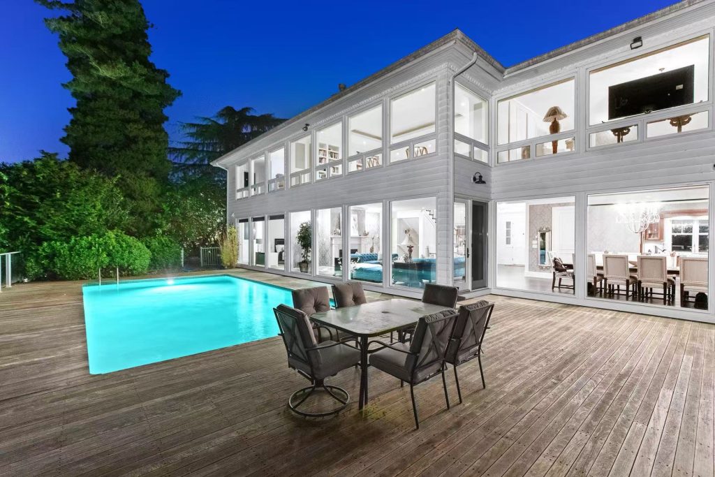 This exquisite custom-built residence in the prestigious UBC area offers breathtaking panoramic views of the ocean, mountains, and city skyline. Situated on a beautifully landscaped 30,545 sq. ft. lot, this stunning home boasts 7,876 sq. ft. of luxurious living space, complete with an outdoor pool. The main level features an elegant living and dining area, a spacious family room, and a well-appointed wok kitchen. Upstairs, you’ll find three generously sized bedrooms, along with a grand living area that can be converted into a fourth bedroom. The lower level is designed for entertainment, featuring a spacious recreation and media room, a wine cellar, and a large ensuite bedroom. Located within the sought-after University Hill Elementary and University Hill Secondary school catchments.