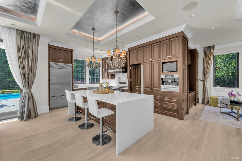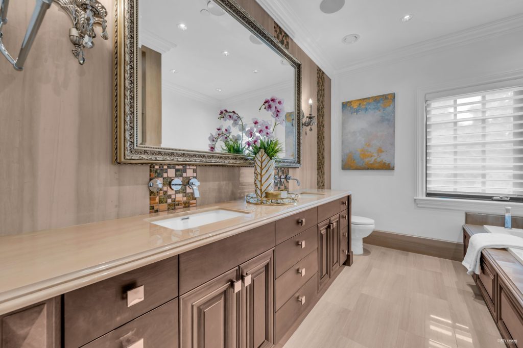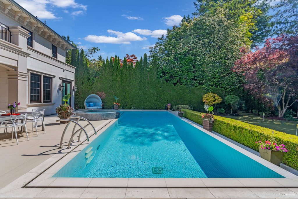 Meticulously custom-built home sitting on 89'x175' lot, in the most desirable Shaughnessy neighborhood. Inspired by traditional European architecture w/ modern touches around every corner. 5777 sqft luxury living space w/ smart home system, exceptional quality finishing features 4 bdrms up & 2 bdrms in the basement, steam/sauna, wine cellular and theater/rec. rm. Semi-precious, translucent fossil granite countertops and a hidden stainless steel, industrial Wok kitchen contribute to the home’s contemporary interior design. The open concept extends outdoors to a stunning 40 ft infinity edge pool and jacuzzi wrapped with stained teak decking and surrounded by manicured Zen Gardens, putting green, a creek, soothing waterfall, Japanese Garden and cherry blossoms. A true unique masterpiece!