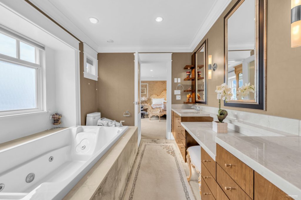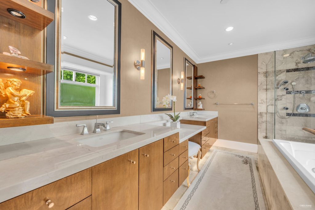 Undeniably one of Vancouver’s most stunning homes, designed by the acclaimed Victor Eric Design Group. A 2008 Georgie Award finalist and featured in Spectacular Homes of Western Canada. The centerpiece is a spectacular 3-storey water feature. Open-concept layout with rich, elegant finishes throughout. Gourmet kitchen boasts top-tier appliances and an integrated Sub-Zero fridge. Includes 6 bedrooms, custom aquarium, rear Japanese pond, rec room, sauna, steam room, and an incredible theatre lounge. A/C, HRV, hardwood, exotic marble floors, and more. Impeccable craftsmanship and quality in every detail. Dr. Annie B. Jamieson Elementary & Sir Winston Churchill Secondary.